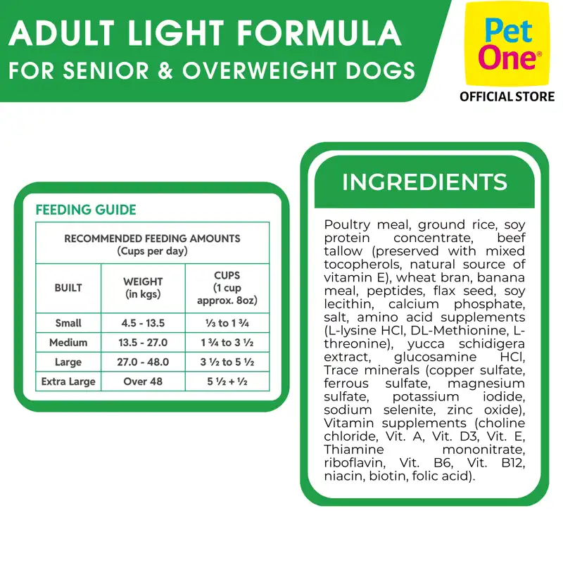 Phù hợp cho: Chó thừa cân và chó lớn tuổi từ 7 năm tuổi trở lên